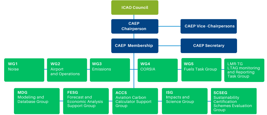 In seno all’ICAO (International Civil Aviation Organisation) è istituito un organismo tecnico, il Comitato per la Protezione Ambientale (Committee on Aviation Environmental Protection – CAEP), preposto alla gestione dell’Annesso 16 (Environmental Protection) alla Convenzione di Chicago.