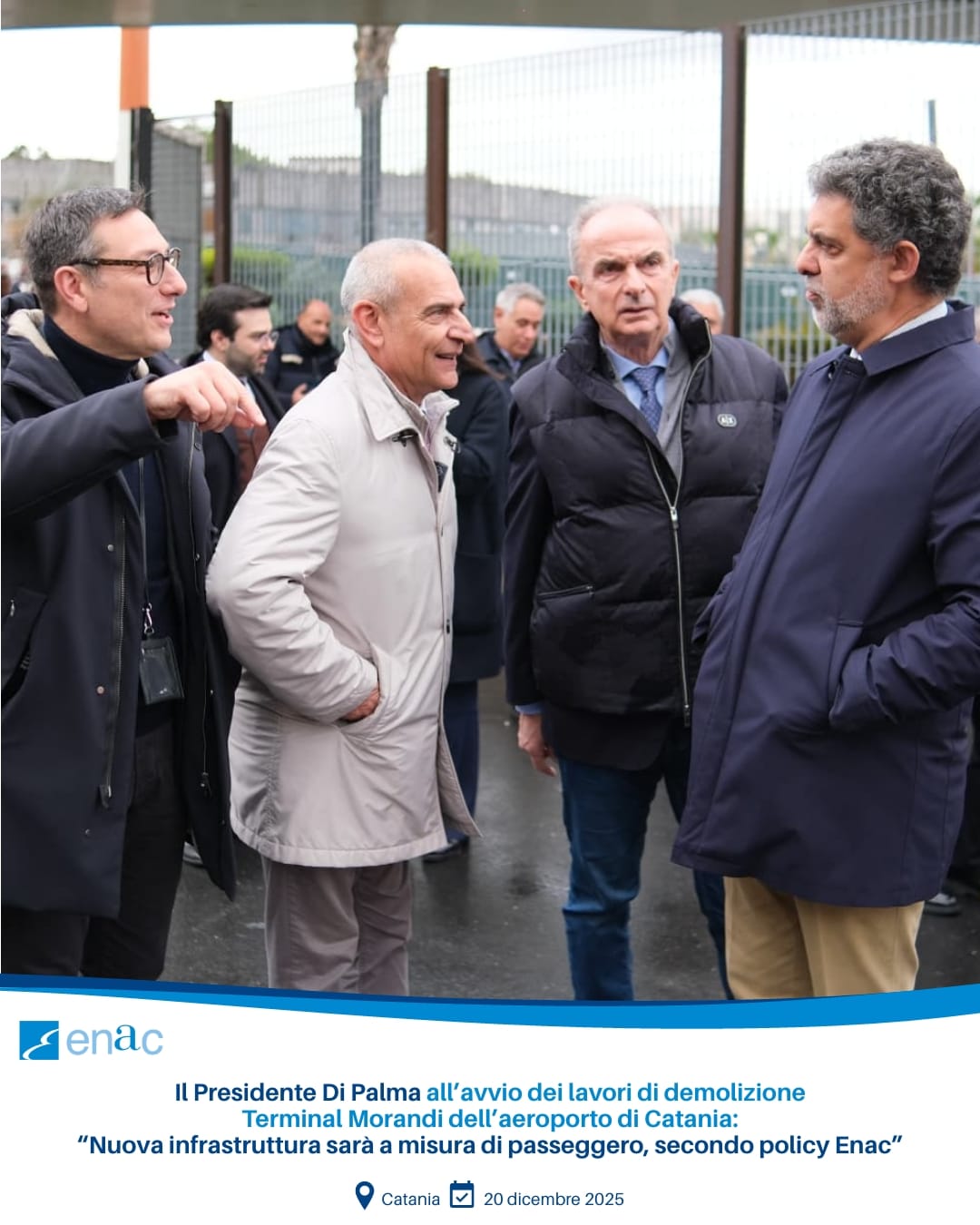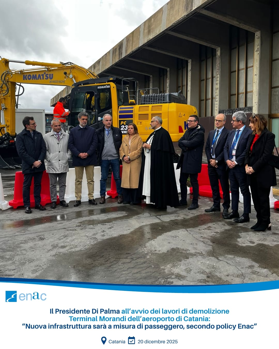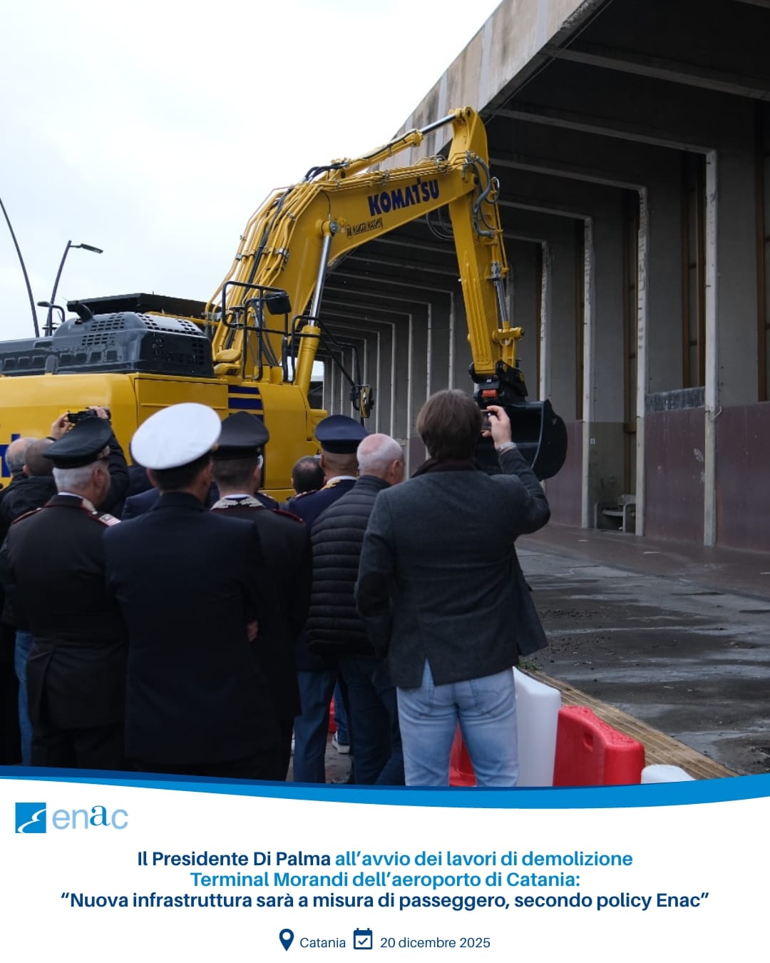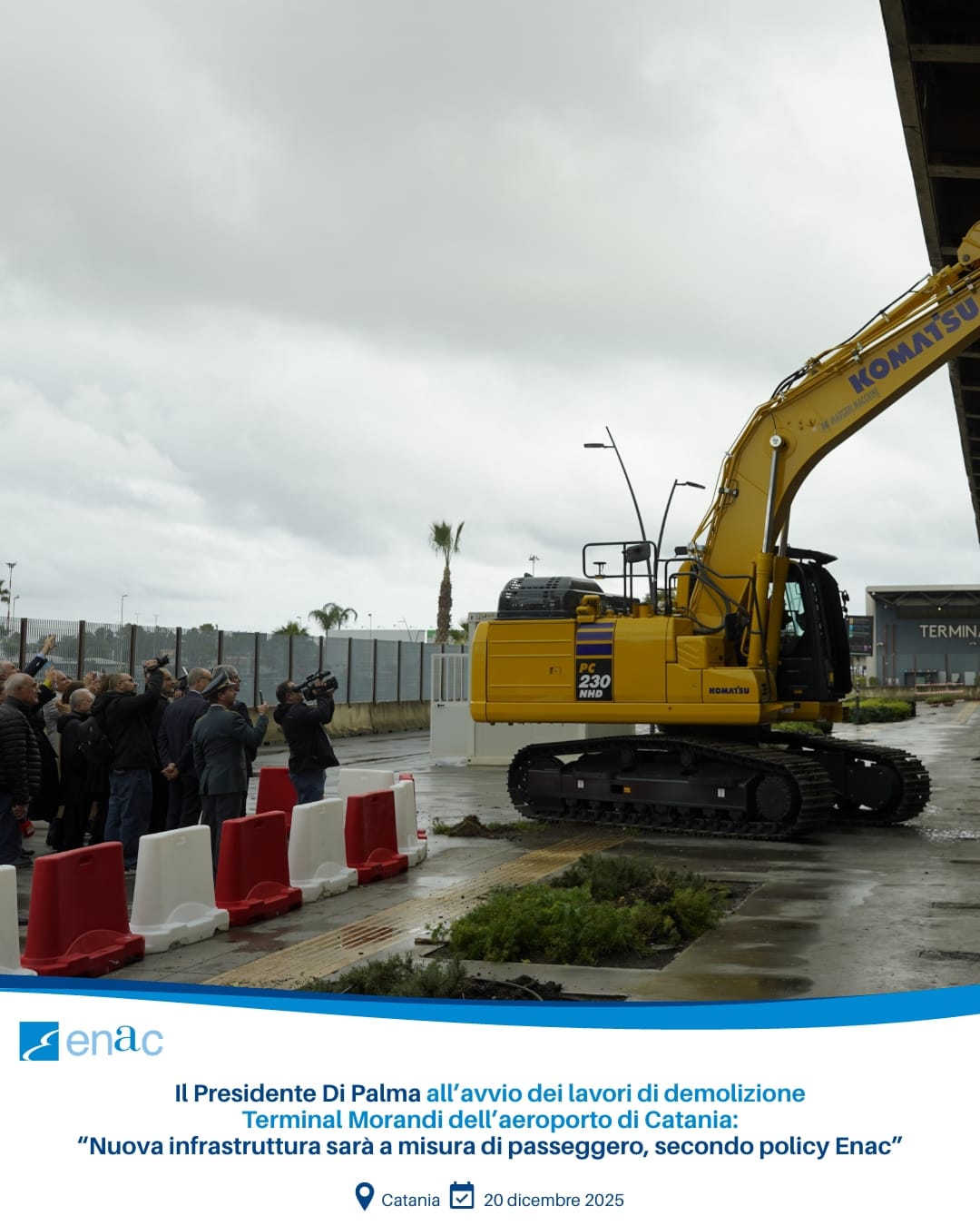 Il Presidente Enac Pierluigi Di Palma ha partecipato oggi, 20 dicembre, all’avvio dei lavori di demolizione del Terminal Morandi dell’Aeroporto di Catania: intervento strategico per la realizzazione del nuovo Terminal B che, sulla base del Piano di Sviluppo Aeroportuale approvato da Enac, potenzierà la capacità operativa e la qualità dei servizi dello scalo.