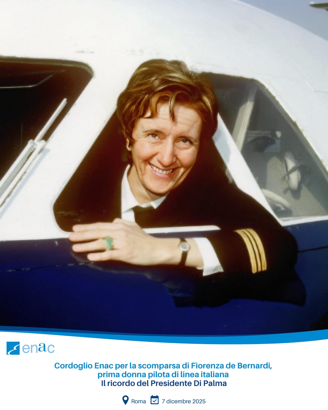 Il Presidente Enac Pierluigi Di Palma, il Direttore Generale Alexander D’Orsogna, il CdA e l’Ente tutto si uniscono al sentimento di cordoglio per la scomparsa di Fiorenza de Bernardi, prima donna pilota di voli di linea in Italia.