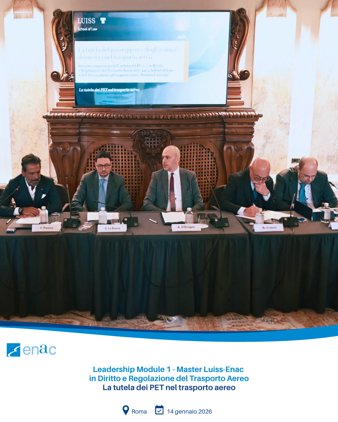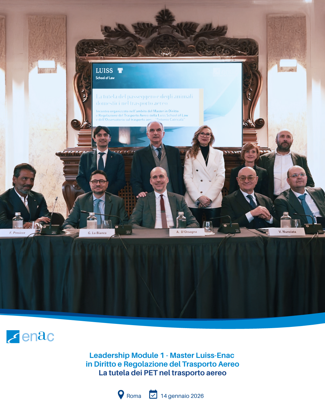 Il benessere dei PET che viaggiano in aereo è il focus della seconda giornata del convegno Luiss – Enac “La tutela del passeggero e degli animali domestici nel trasporto aereo” che si è concluso oggi, 14 gennaio, a Roma, nell’ambito del Master in Diritto e Regolazione del Trasporto Aereo della Luiss School of Law e dell’Osservatorio sul trasporto aereo “Antonio Catricalà”.
