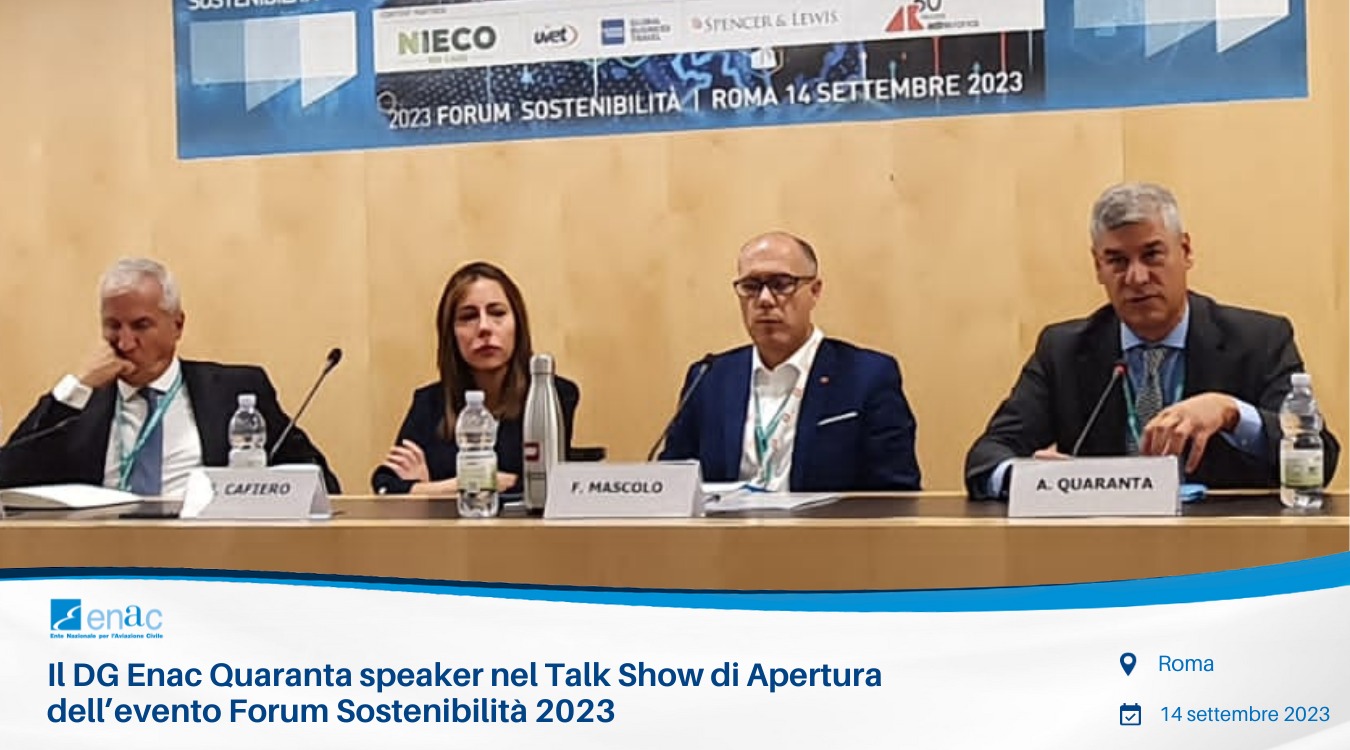 Intervento del Direttore Generale Enac, Alessio Quaranta, al Forum Sostenibilità 2023, nel panel di apertura “Italia sostenibile, a che punto siamo?”